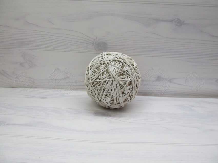 5. После того как вы плотно обмотали шарик, отрежьте нитку. Можно оставить небольшой хвостик, чтобы сделать петельку и повесить шарик на елку, например.
