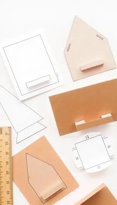 Простая складная подставка: Эта модель идеально подходит для начинающих. Выкройка состоит из одного прямоугольника кожи, который складывается пополам и фиксируется кнопкой или магнитом. Такая подставка компактна и удобна в транспортировке.