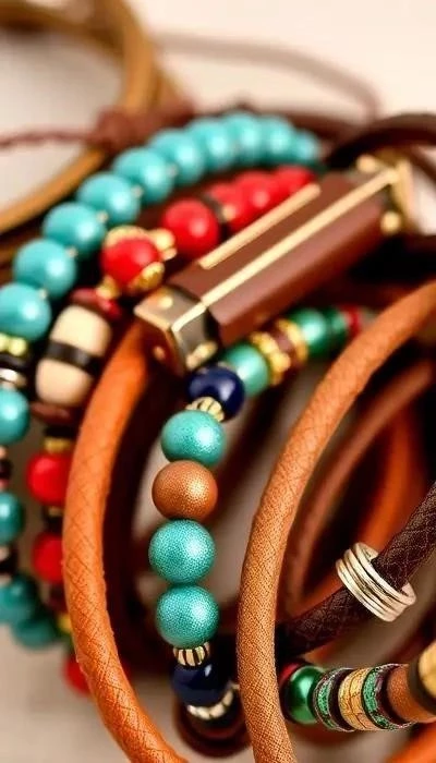 Этнический браслет – вдохновлен традиционными узорами и мотивами различных культур. Часто используется натуральная кожа и бисер ярких, насыщенных цветов. Преимущества: оригинальный дизайн, отражение индивидуальности. Недостатки: может не подходить к каждому образу. Ценовой диапазон: 1000 – 4000 рублей. Целевая аудитория: любители этнического стиля, путешественники.