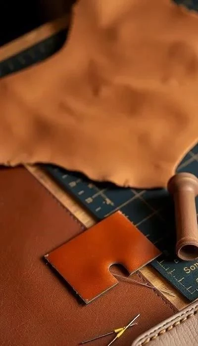 Аккуратно перенесите выкройку на изнаночную сторону кожи, используя специальный карандаш или шило. Острым ножом для кожи вырежьте детали, стараясь не повредить лицевую сторону. Обратите внимание на направление волокон кожи – оно должно быть одинаковым на всех деталях. После раскроя обработайте края деталей, чтобы предотвратить их расслоение.