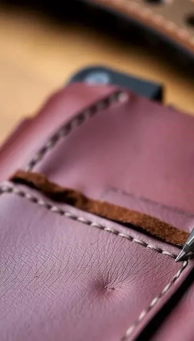 Держатель для ручки: Пришейте узкую полоску кожи с петлей к внутренней стороне чехла. Петля должна быть достаточно широкой, чтобы в нее поместилась ручка. Усильте швы, чтобы ручка не вырвала петлю.