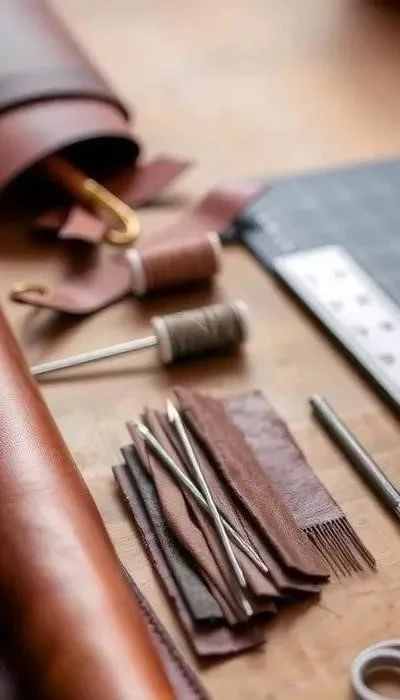 Для защиты от влаги можно использовать водонепроницаемую пропитку для кожи. Из инструментов вам понадобятся: острый нож для раскроя кожи, линейка, карандаш, клей для кожи, обжимные инструменты для фурнитуры, а также возможно, специальные инструменты для тиснения и декора кожи.