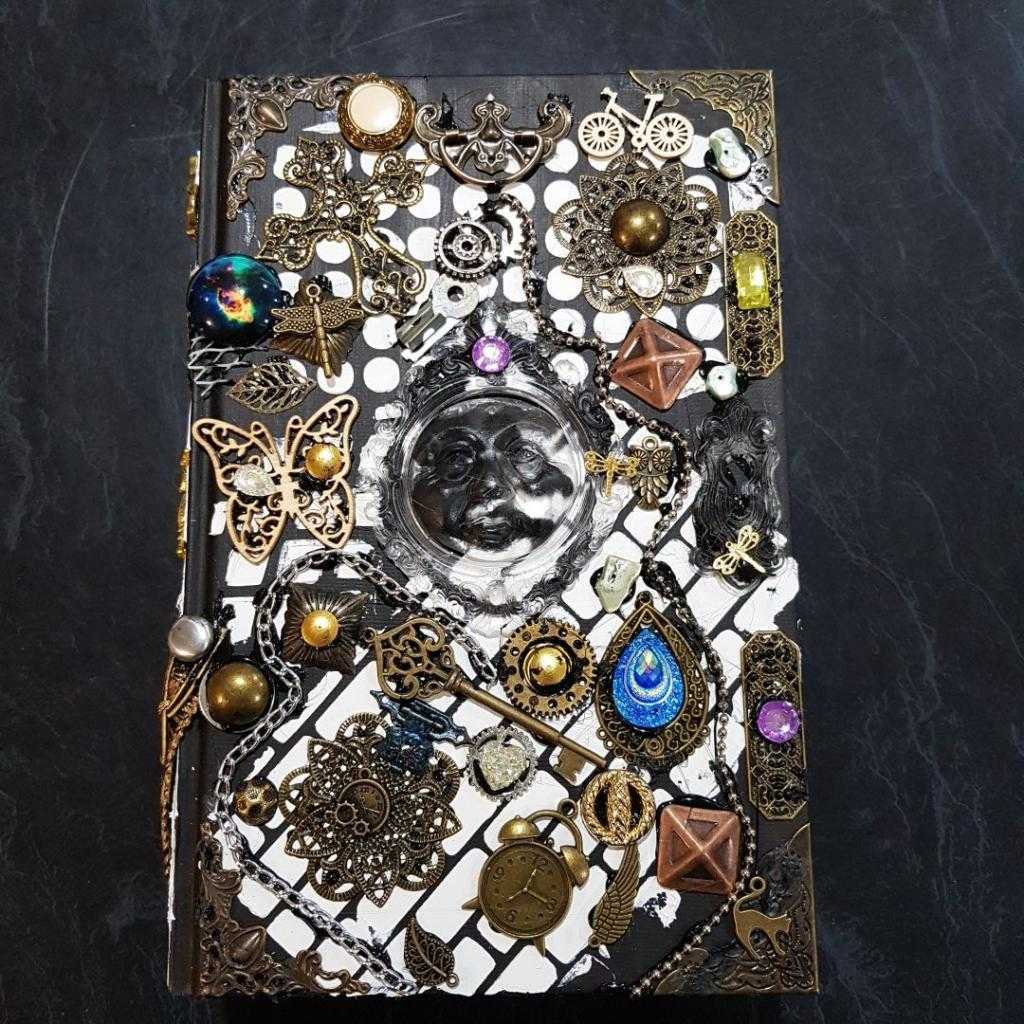 Это самая интересная и одновременно грязная часть работы. Вы можете добавить что угодно к книге, чтобы украсить ее. Вот список нескольких предметов, которые я использовала: