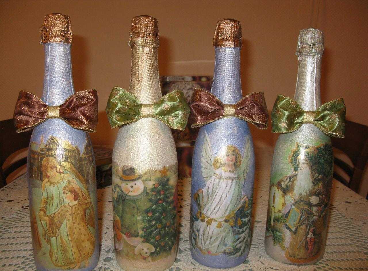 Декупаж бутылки шампанского в стиле ретро на новый год