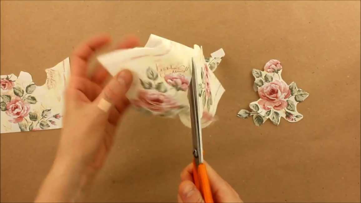 Берем трехслойную бумажную салфетку и маникюрными ножничками аккуратно вырезаем приглянувшиеся мотивы