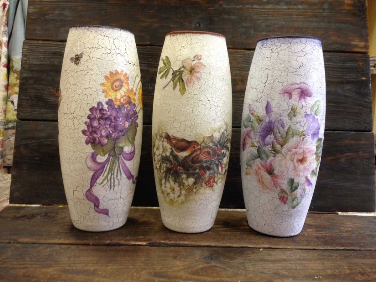 Вазы оформлены с помощью декупажа.