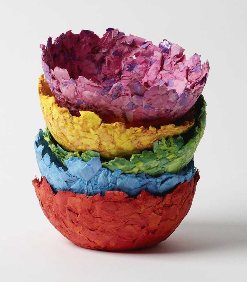 Чем больше слоев, тем прочнее будет поделка. Верхний слой из одного или двух слоев белой бумаги позволит легко рисовать на готовой основе или украшать ее.