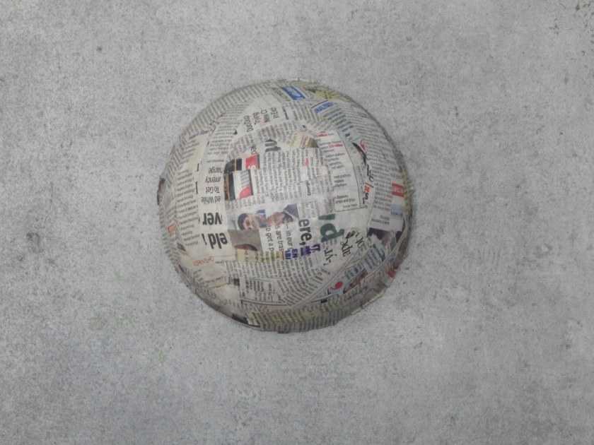 В общей сложности наносят около 8-10 слоёв бумаги, нанося между каждым слоем клей при помощи кисточки. Изделие отправляют на просушку, которая длится около 3-4 дней.