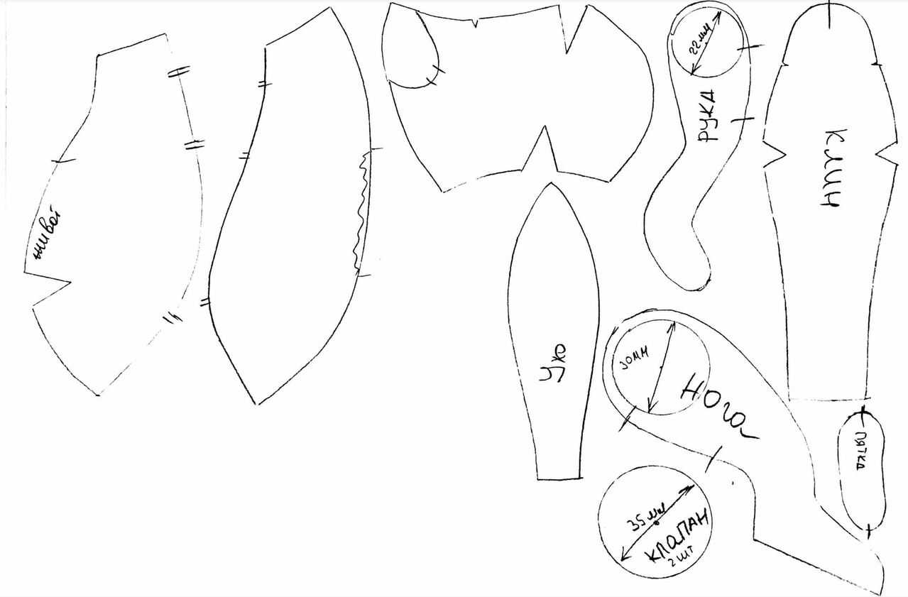 При желании можно еще на первых этапах изготовления выкройки внести индивидуальные изменения – увеличить размер шеи или нижних лап, пришить хвостик.