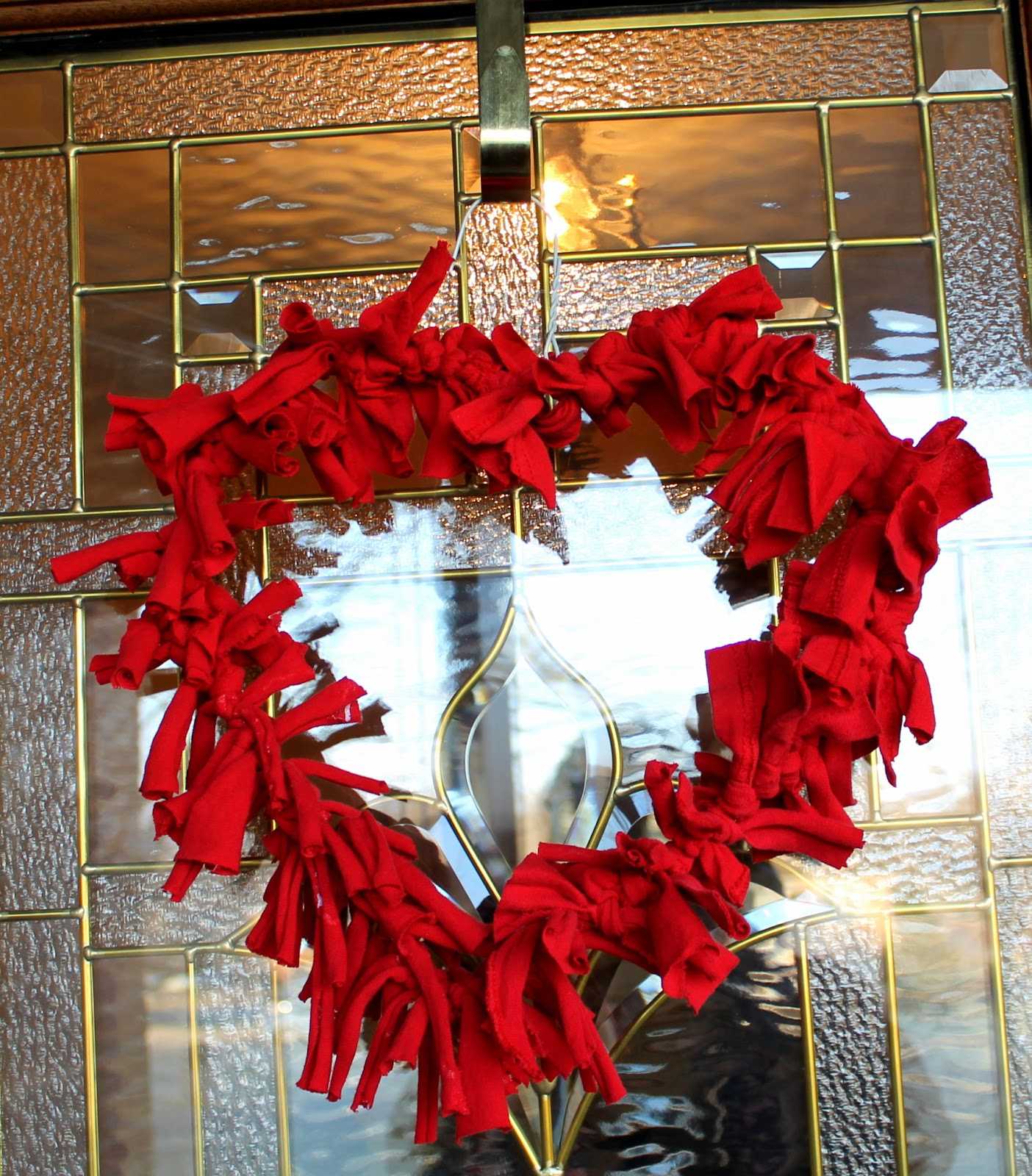На фото ниже показано, как сделать венок из веток в форме сердца. Для его изготовления необходимо взять пучок ивовых или березовых веток, связать его на конце, затем разделив надвое, свернуть в форме сердца и зафиксировать, связав веревкой, как показано на рисунке. Аккуратно обрезать торчащие концы веток. Украсить венок цветами, сердечками, фигурками ангелов, бантами.