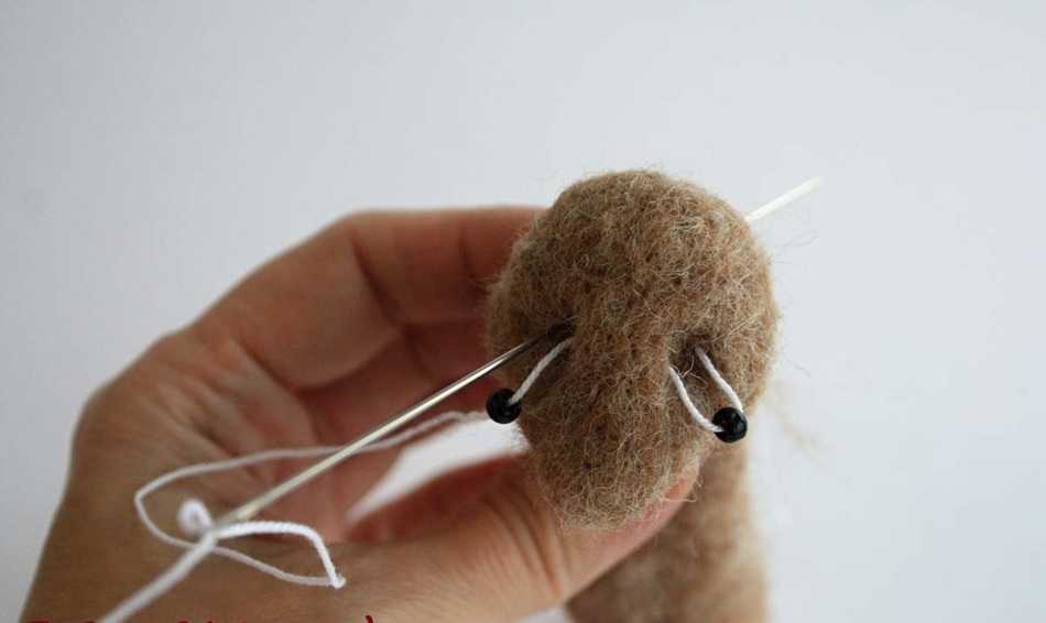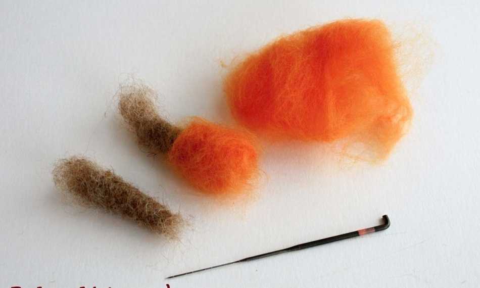 Материал необходимо разделить по разным направлениям, а затем начать работу толстой иглой, поворачивая изделие и придавая ему нужную форму и плотность.