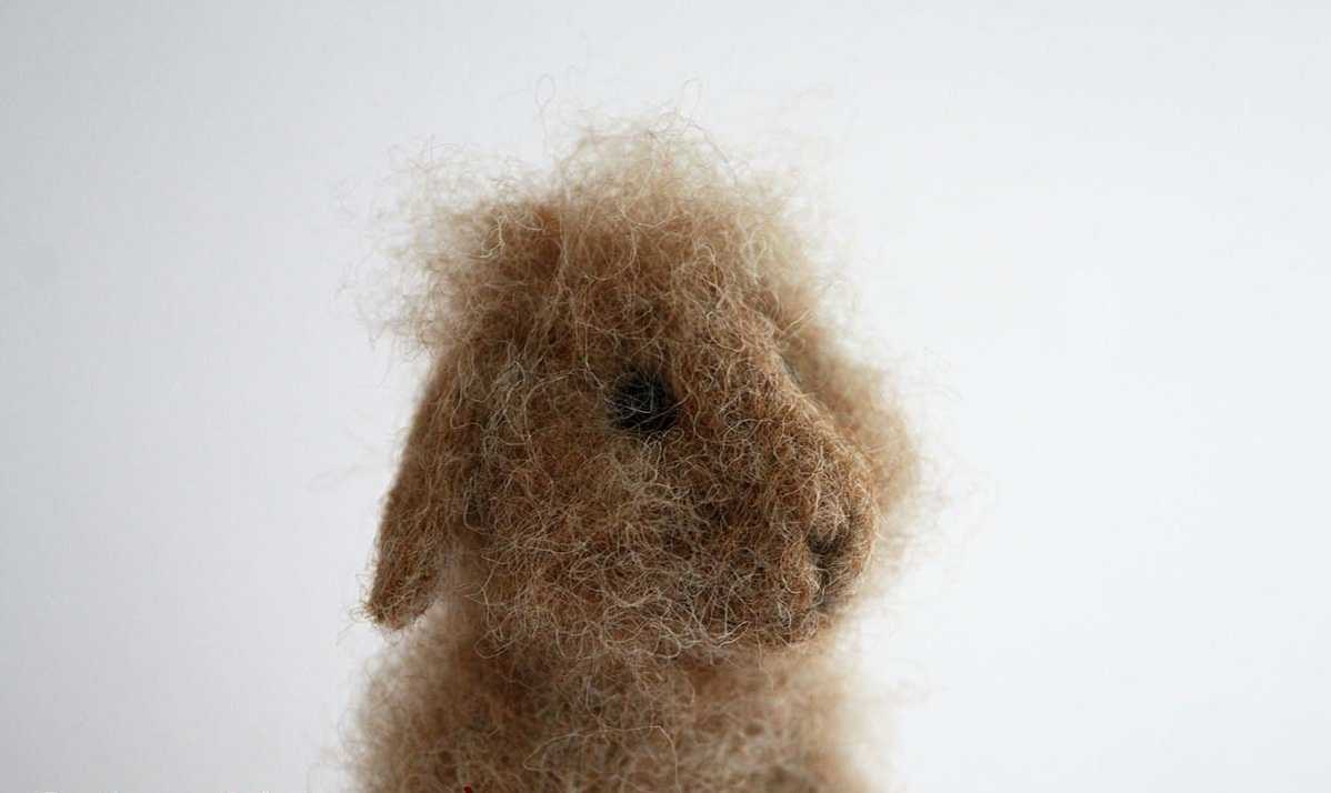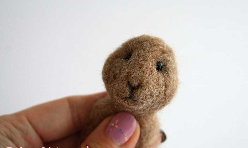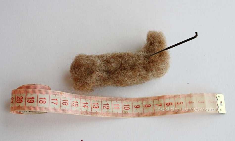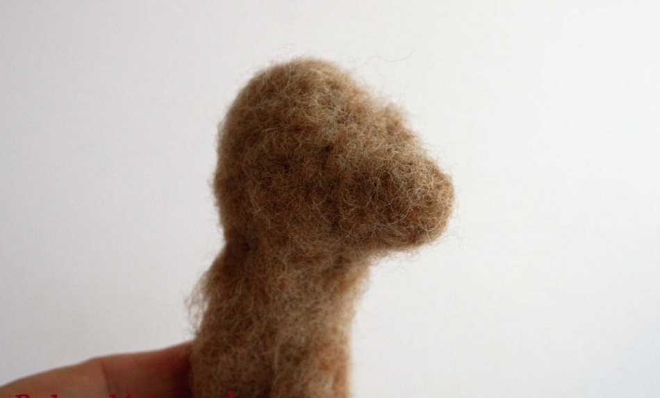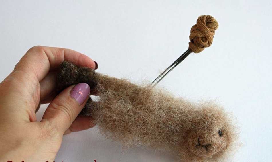 - Наконец, шерсть формируется обратной иглой. Обрабатывается вся фигура за исключением ног и мордочки. В этом случае за поверхностью нужно заранее хорошо ухаживать, иначе игрушка развалится