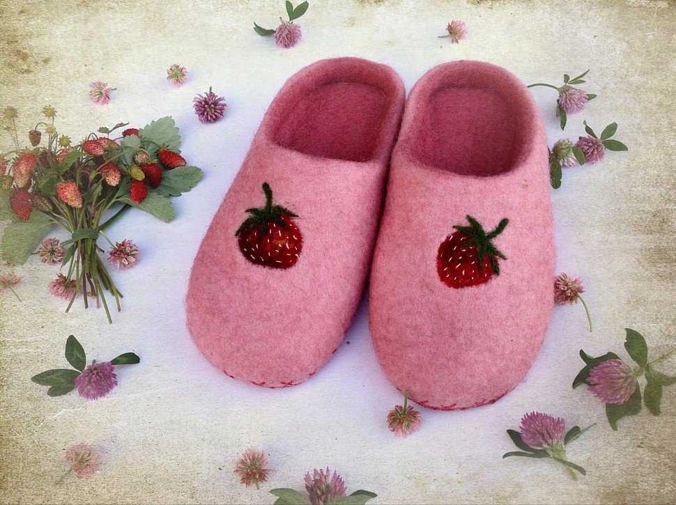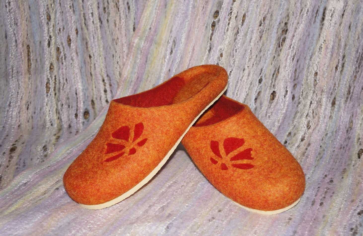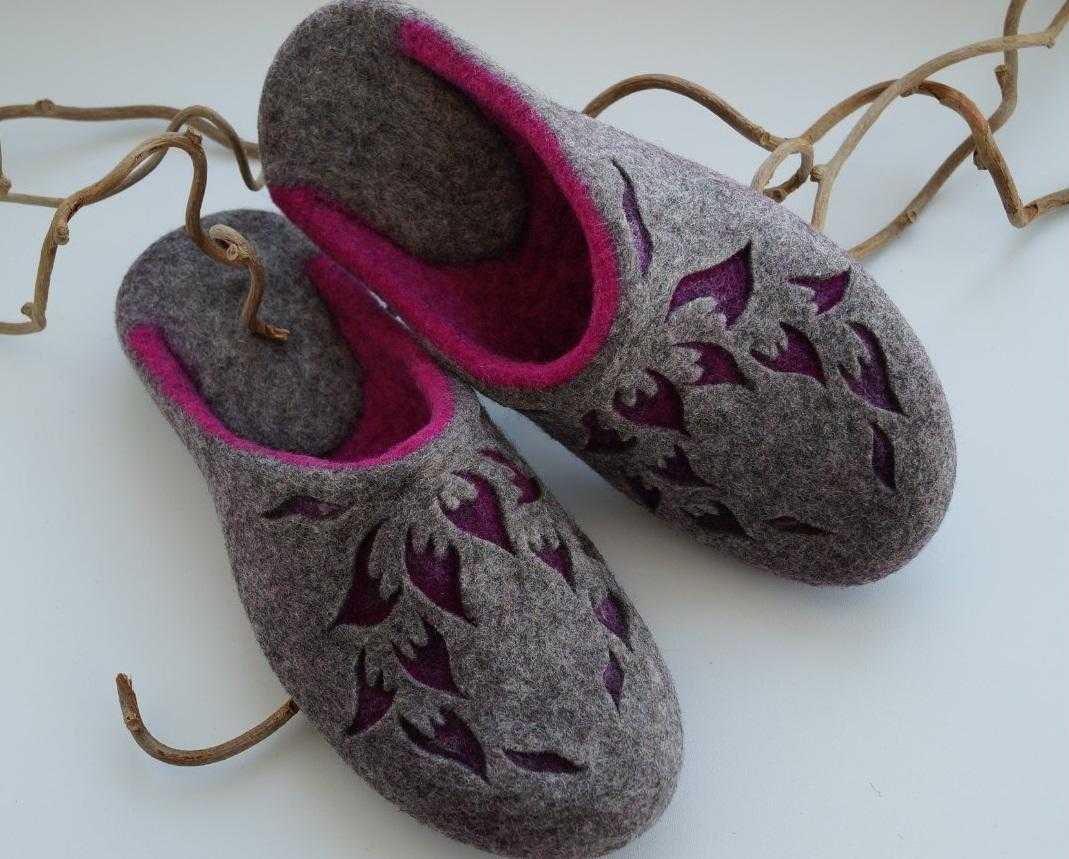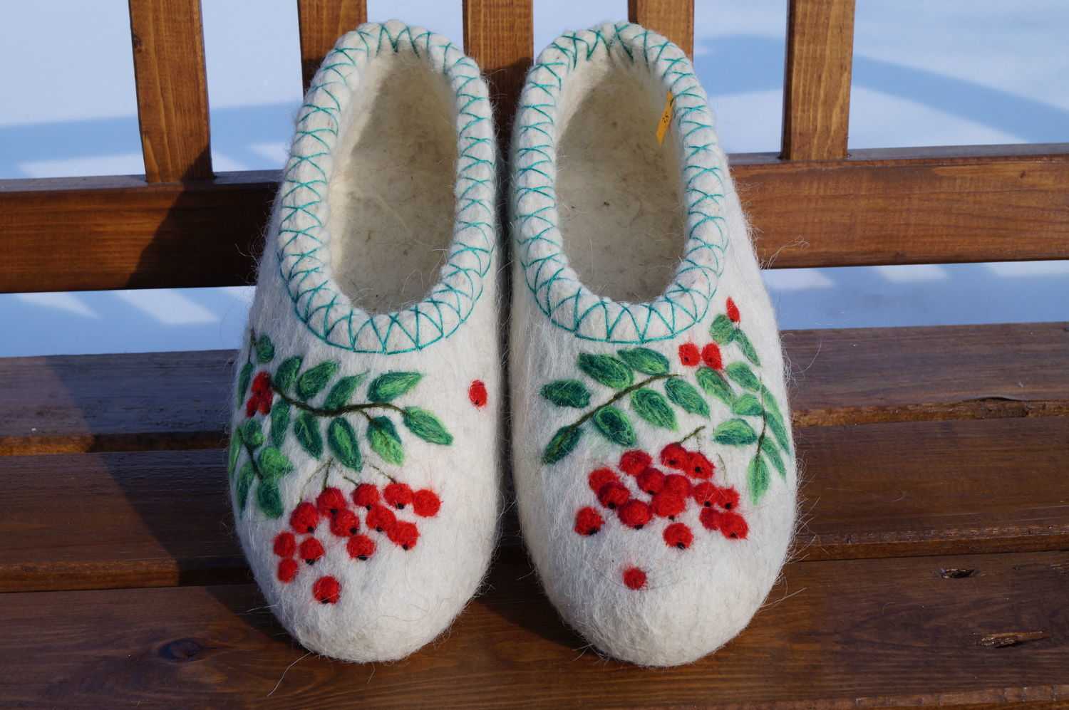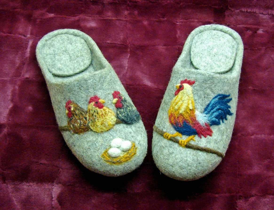 Что касается аппликаций, они должны отличаться от основного фона. Шерсть для них раскладывают на изделии и приваливают, определив границы узора. Тапки с такой аппликацией смотрятся очень эффектно и колоритно.