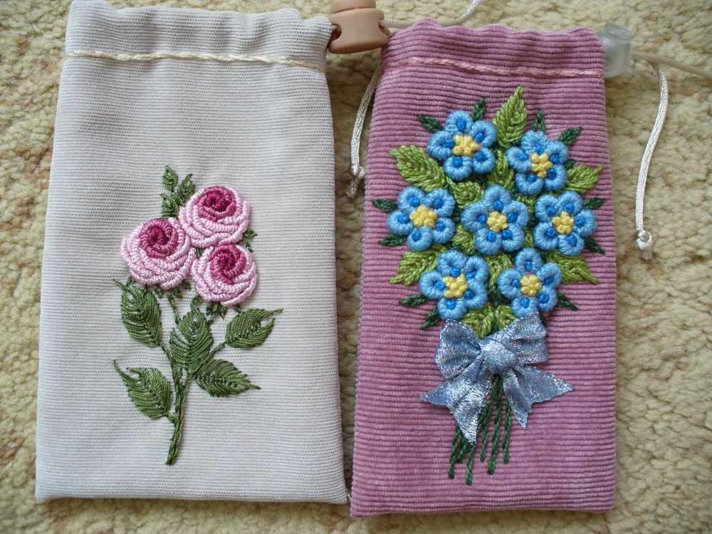 С помощью рельефной вышивки можно придать привычным вещам праздничный вид. Нежные, практически «живые» картинки прекрасно смотрятся не только на панно, скатертях и салфетках, но и на трикотажных кофтах, джинсах и даже сумках.