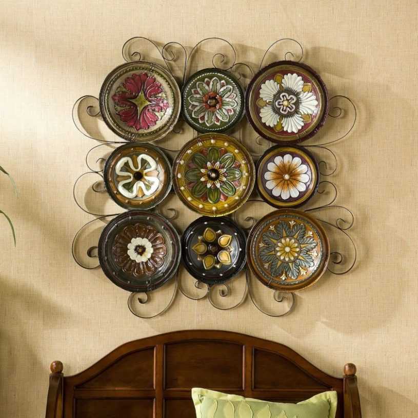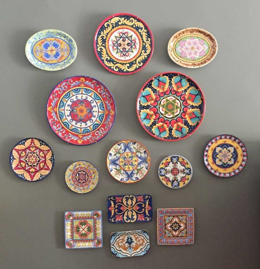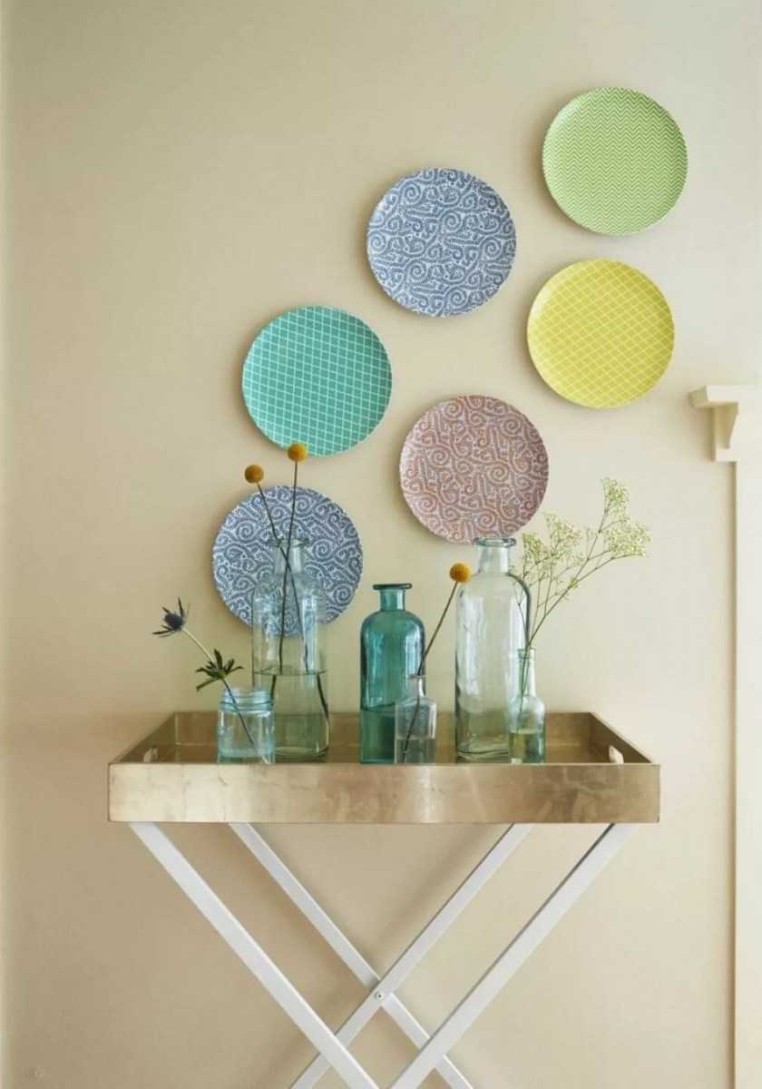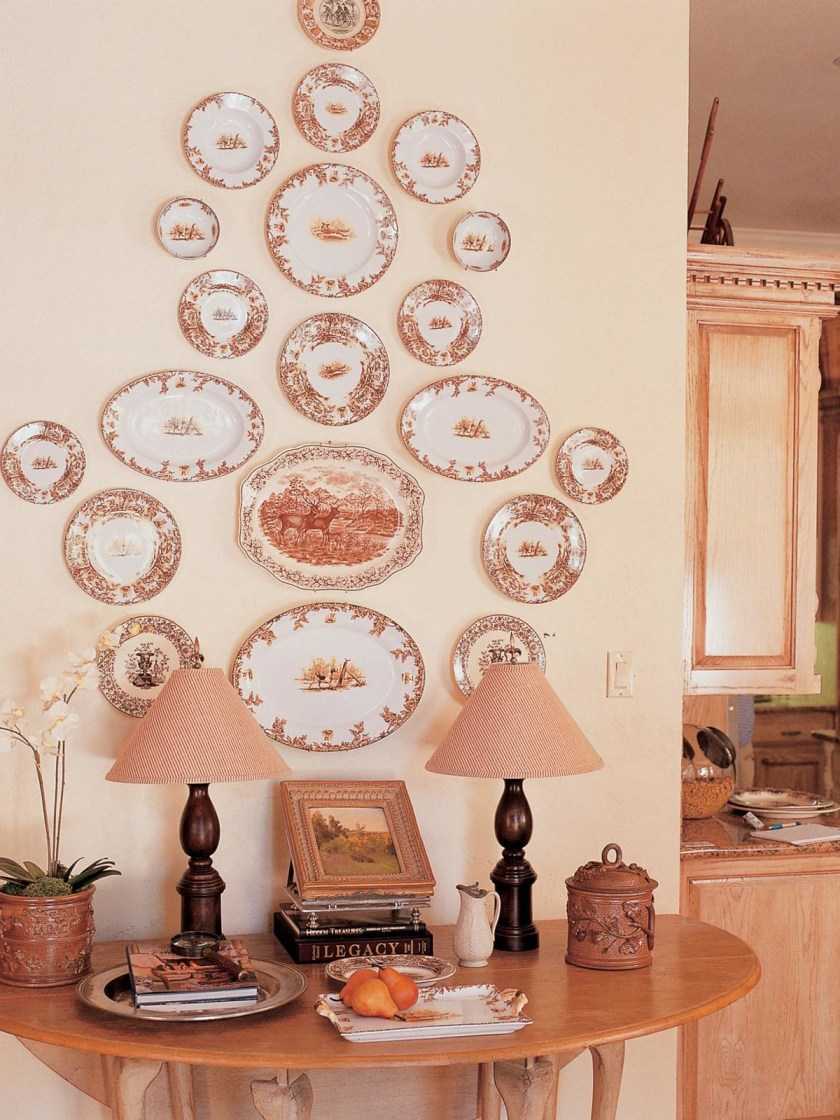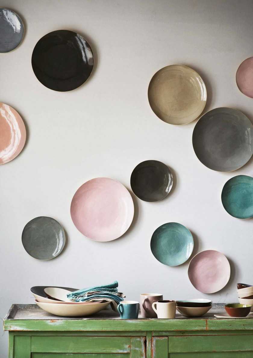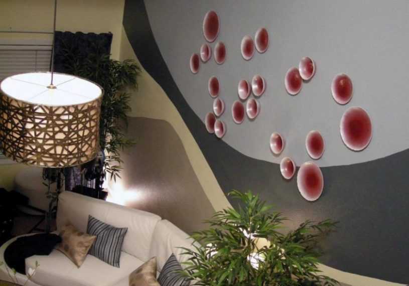 Совет! Не бойтесь экспериментировать с размером и цветом декоративных тарелок: сочетайте однотонные с разноцветными, а большие с маленькими и средними.