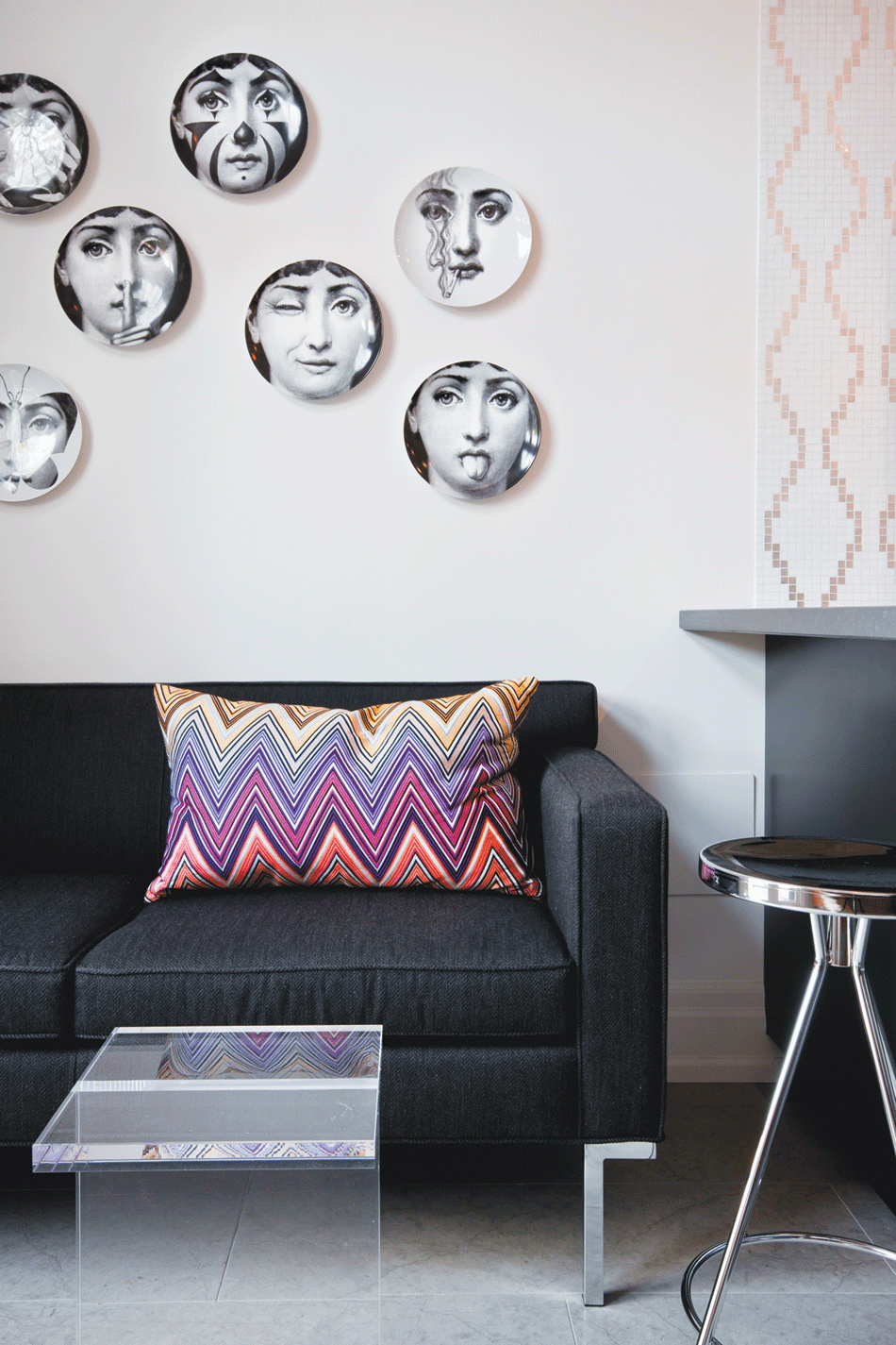 Элегантные бирюзовые тарелки в интерьере гостиной в стиле модерн