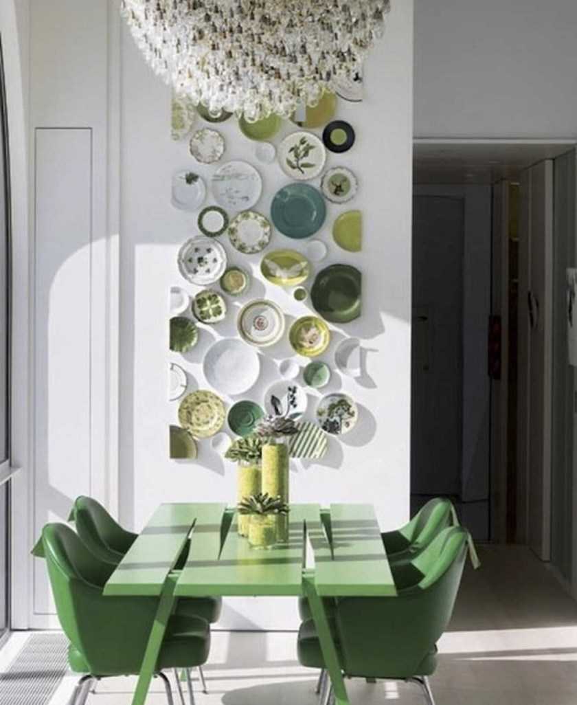 Панно из тарелок на стену может стать финальным штрихом в оформлении столовой или обеденной зоны