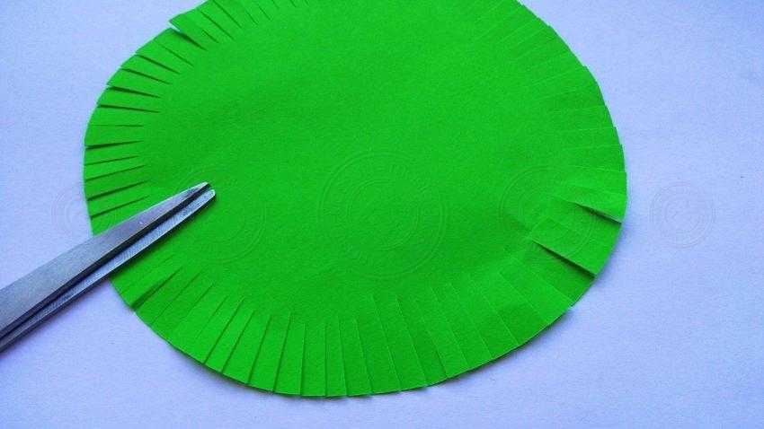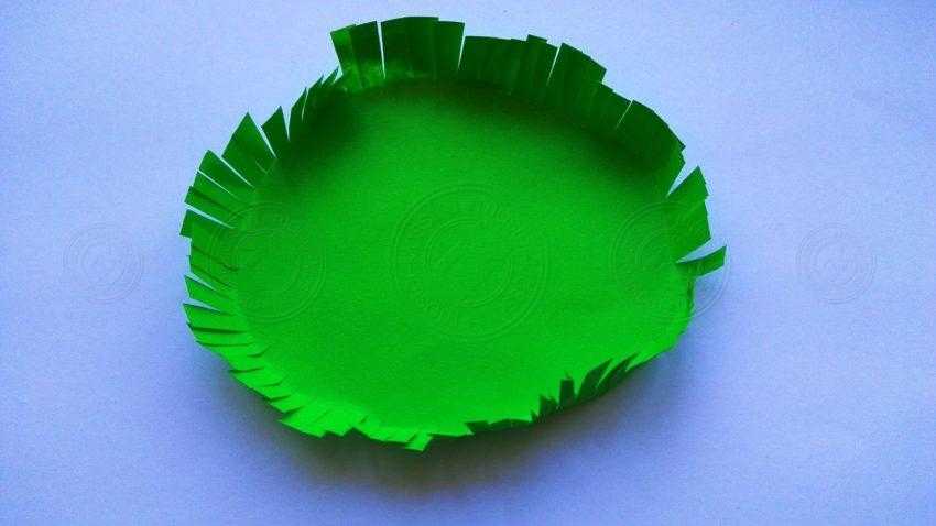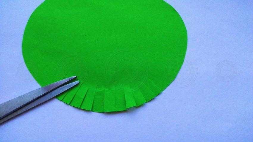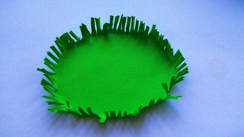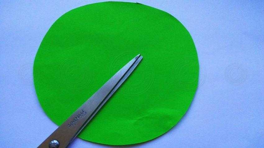 2. Из зеленой бумаги вырежьте круг такого размера, чтобы в дальнейшем на его центральной части поместился ежик.