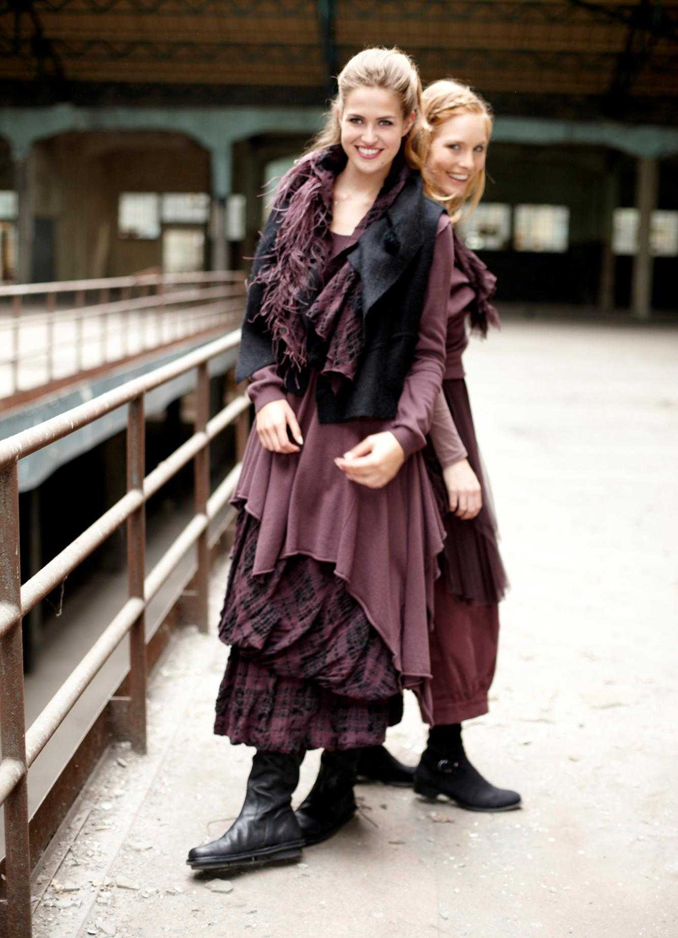 Набить шифоньеры одеждой с пестрыми абстрактными принтами, пэчворком, вышивкой, этно-орнаментами. В гардеробе всегда преобладают балахонистые свитера и кофты, летние платья с кружевом и рюшами, широкие брюки, волнистые юбки, рубахи фольклорного типа. Такую одежду надевают под высокие ботинки, резиновые сапоги, сандалии, обувь на невысоком каблуке или без него.