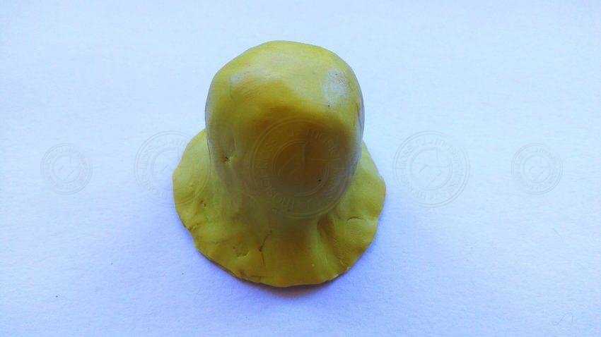 - Расплющиваем его рукой, превращая в овал. Из этого кругляша будем делать тело для обезьянки.
