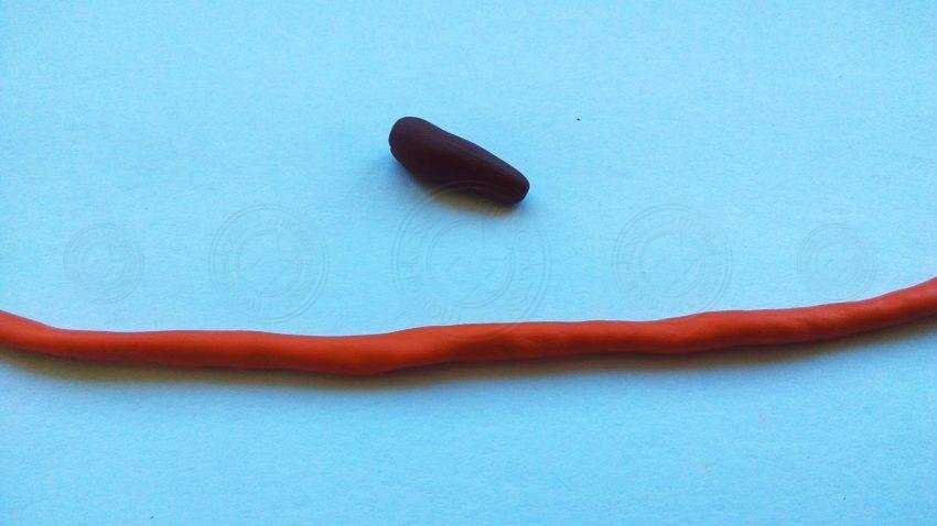 - далее, раскатайте пластилиновую колбаску, чтобы создать хвост. Можно сделать его такой длины и формы, какой вы пожелаете;