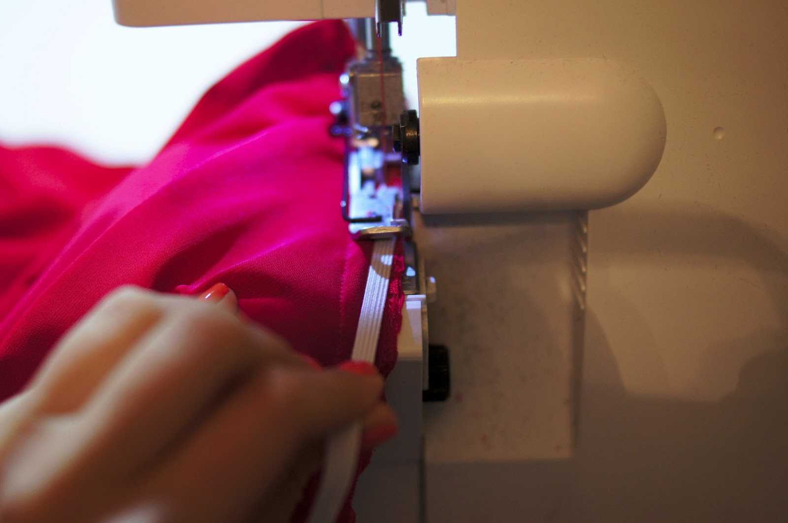 Чтобы трикотаж не растягивался при обработке, специалисты рекомендуют использовать оверлок или современные швейные машинки, оснащенные дифференциальным транспортером. Равномерное передвижение нижнего и верхнего слоев эластичной ткани позволяет добиться ровной строчки.