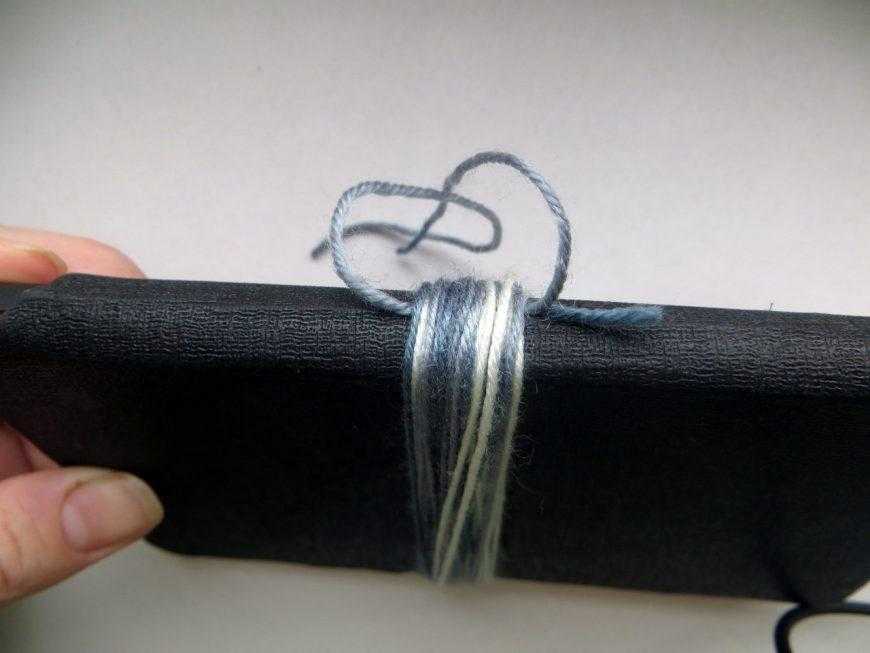 - Вводим рабочую спицу под протяжку спереди и подцепляем её.