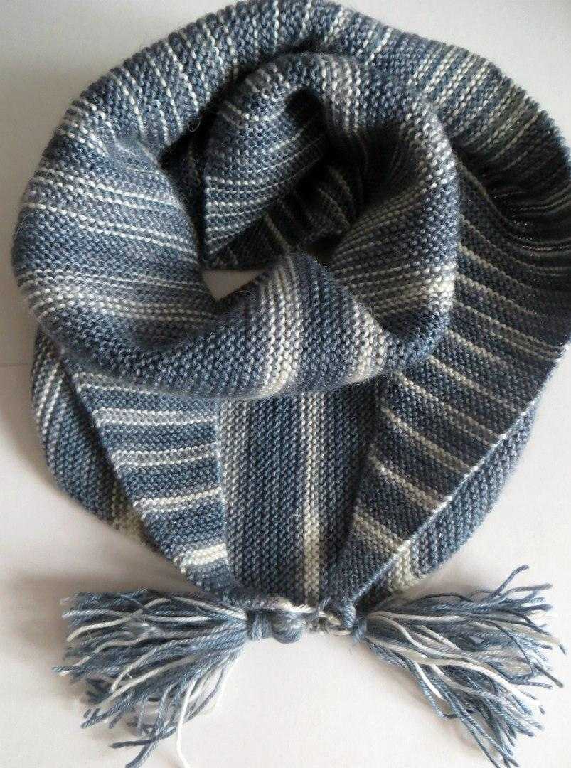 Бактус платочной вязкой — вариант для начинающих или для тех, кто хочет попробовать себя в вязании таких шейных аксессуаров.