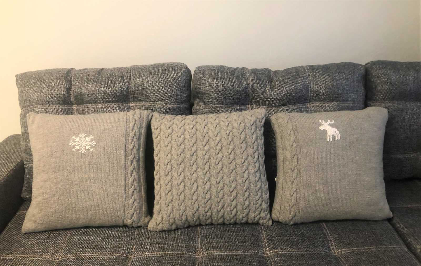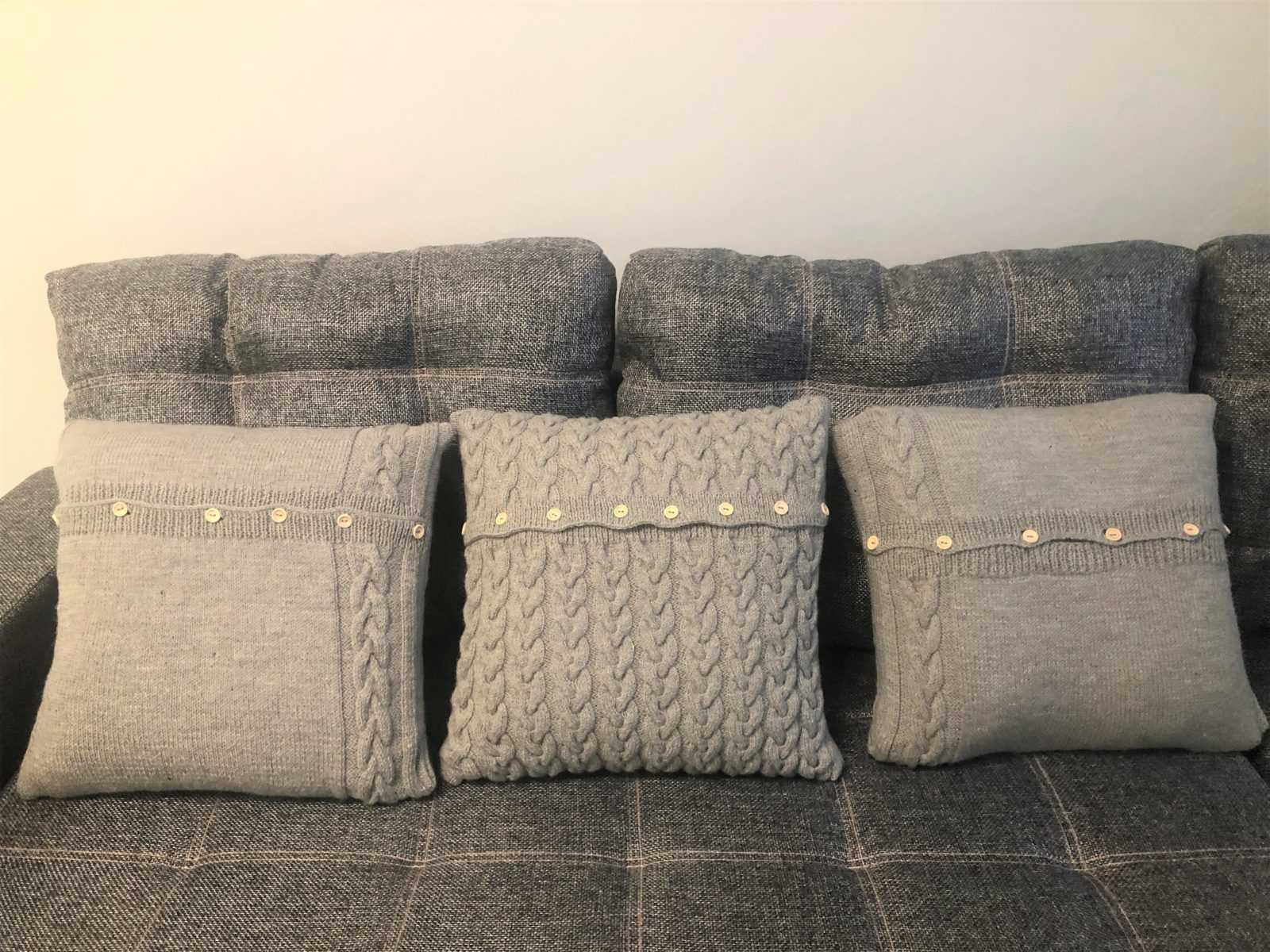 - А ещё из собранных отрезков можно связать уютные, мягкие чехлы для табуретов.