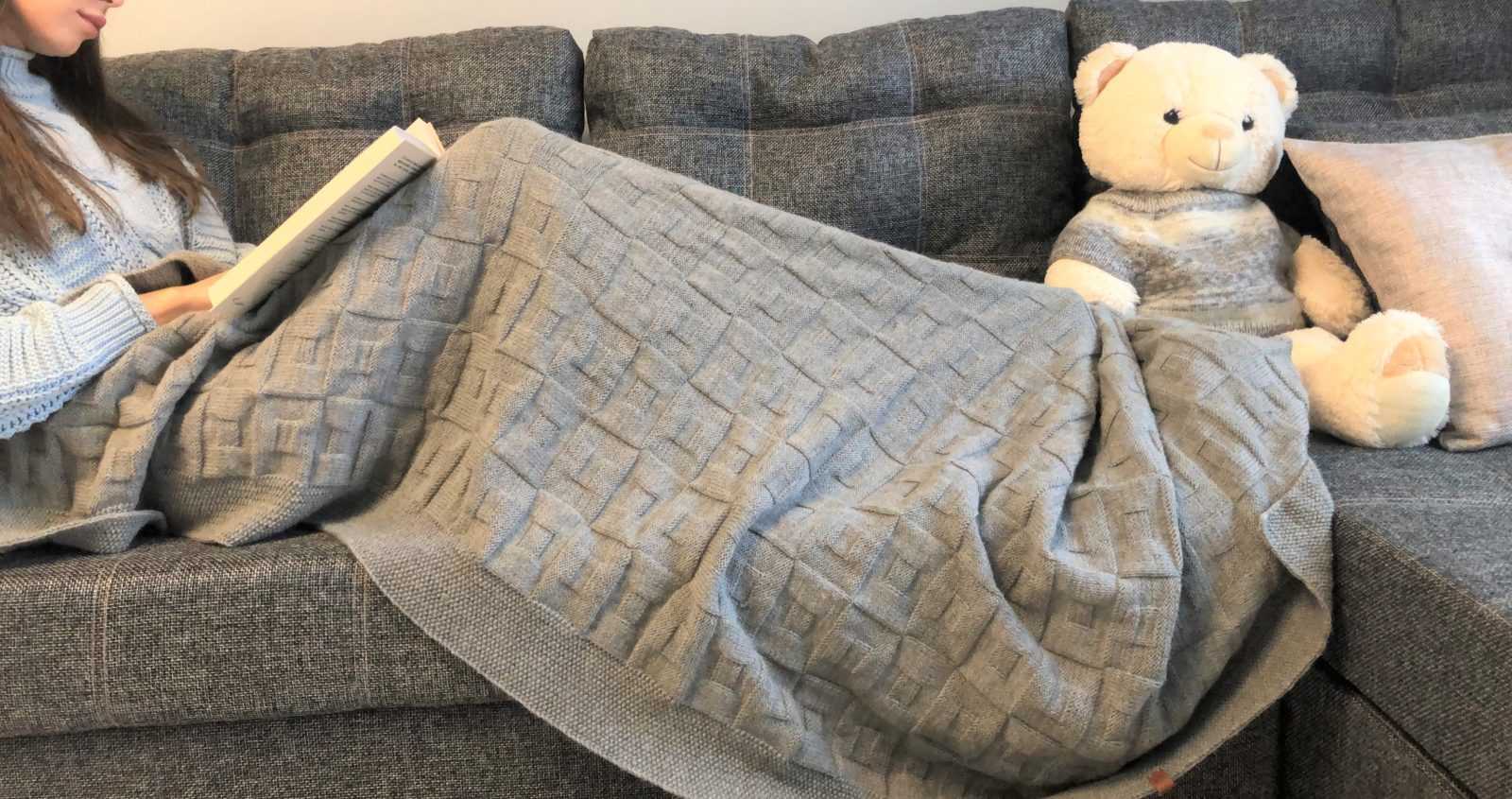 - Заранее продумайте, как обработать края, чтобы плед, связанный спицами, принял готовый вид. Боковые планки можно вывязать сразу, обвязать после, либо вообще обшить края изделия косой бейкой.