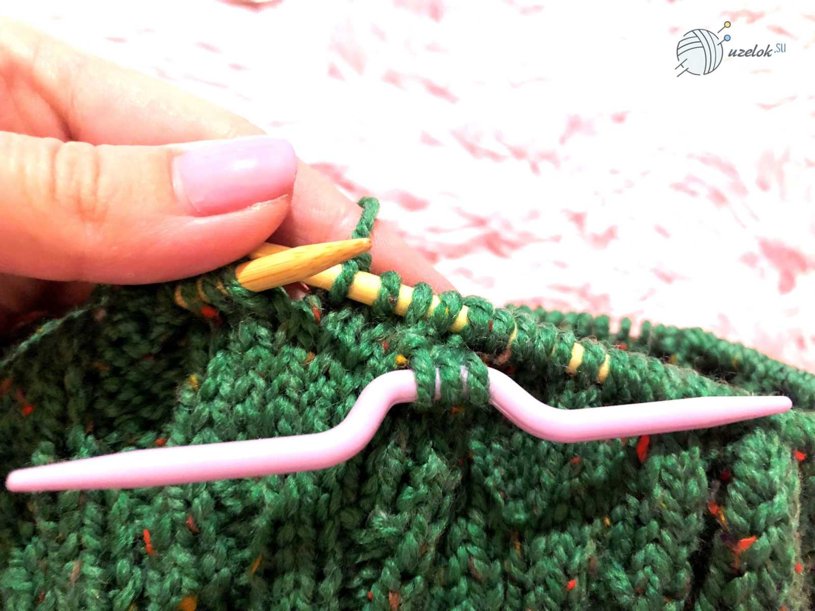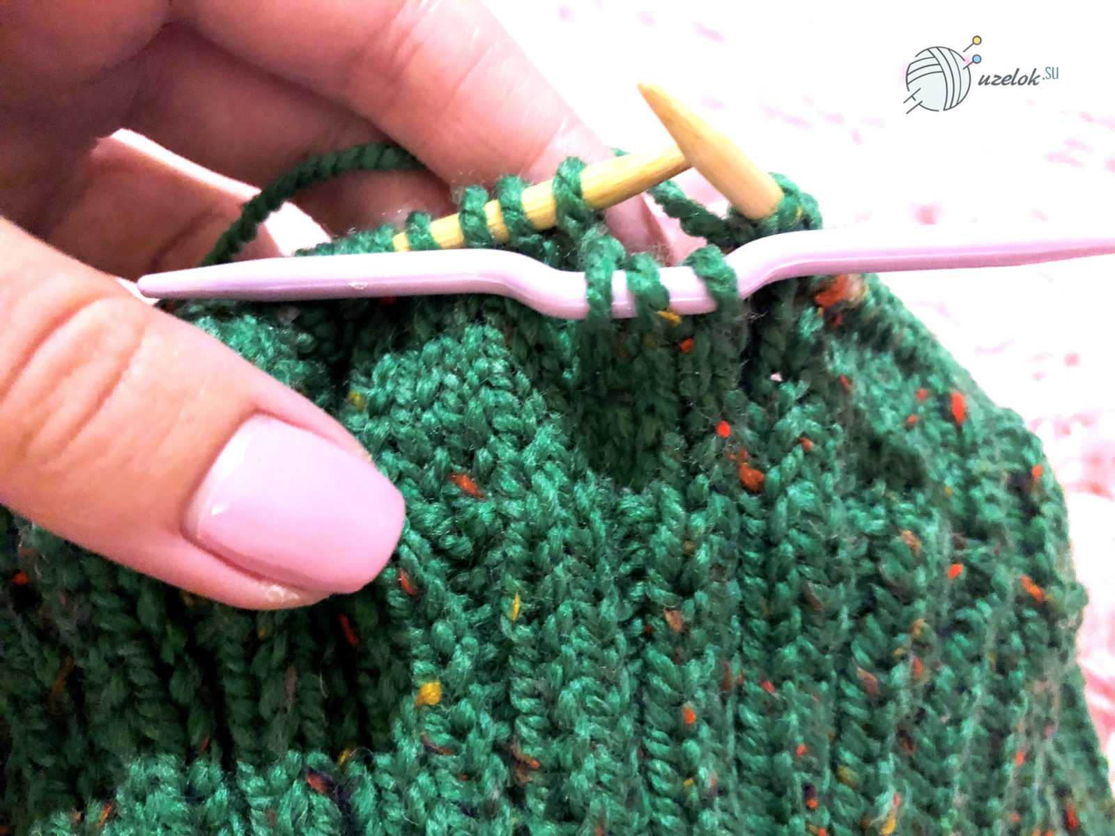 1.Снять 3 петли на дополнительную спицу и оставить ее перед работой.