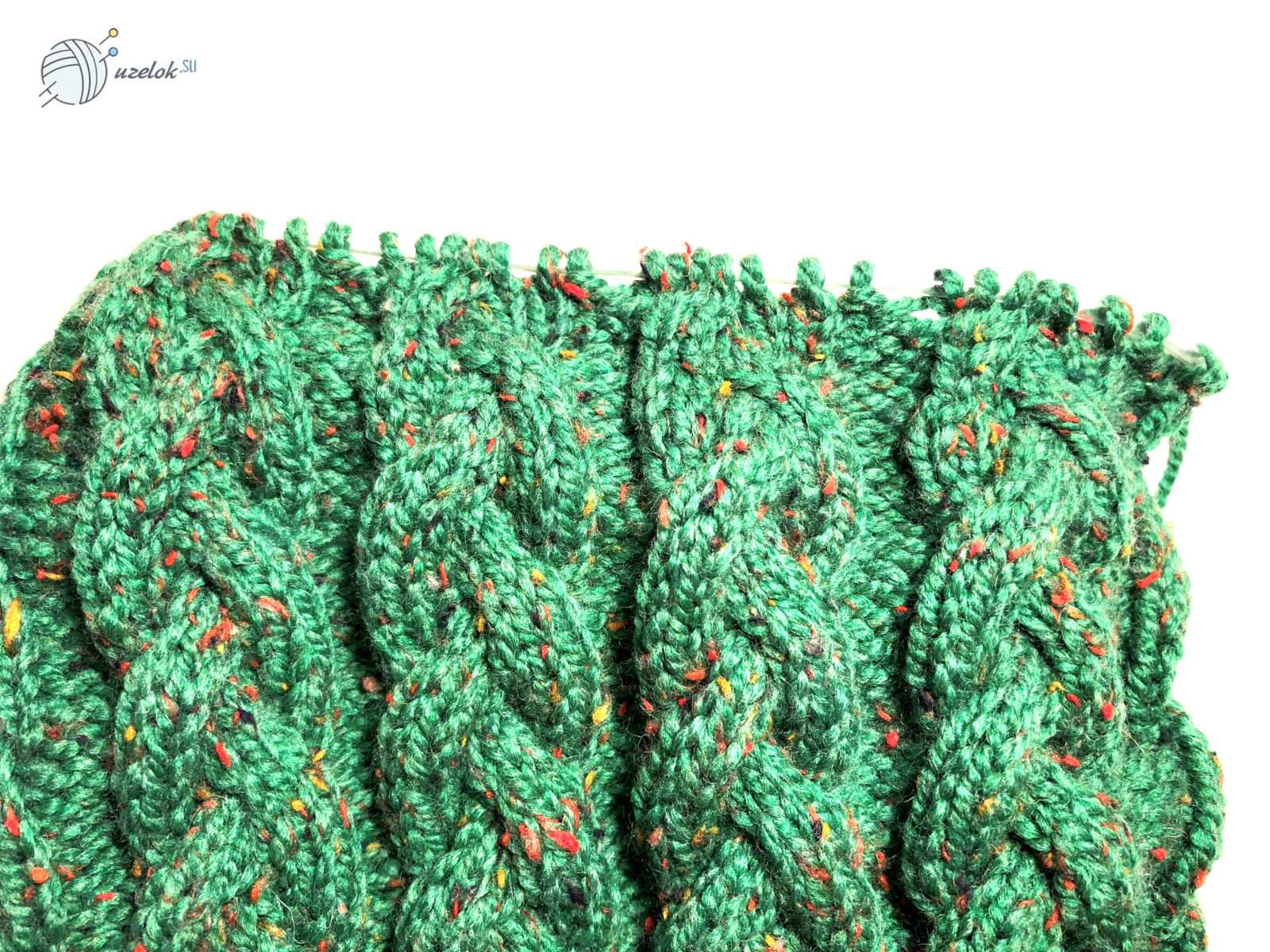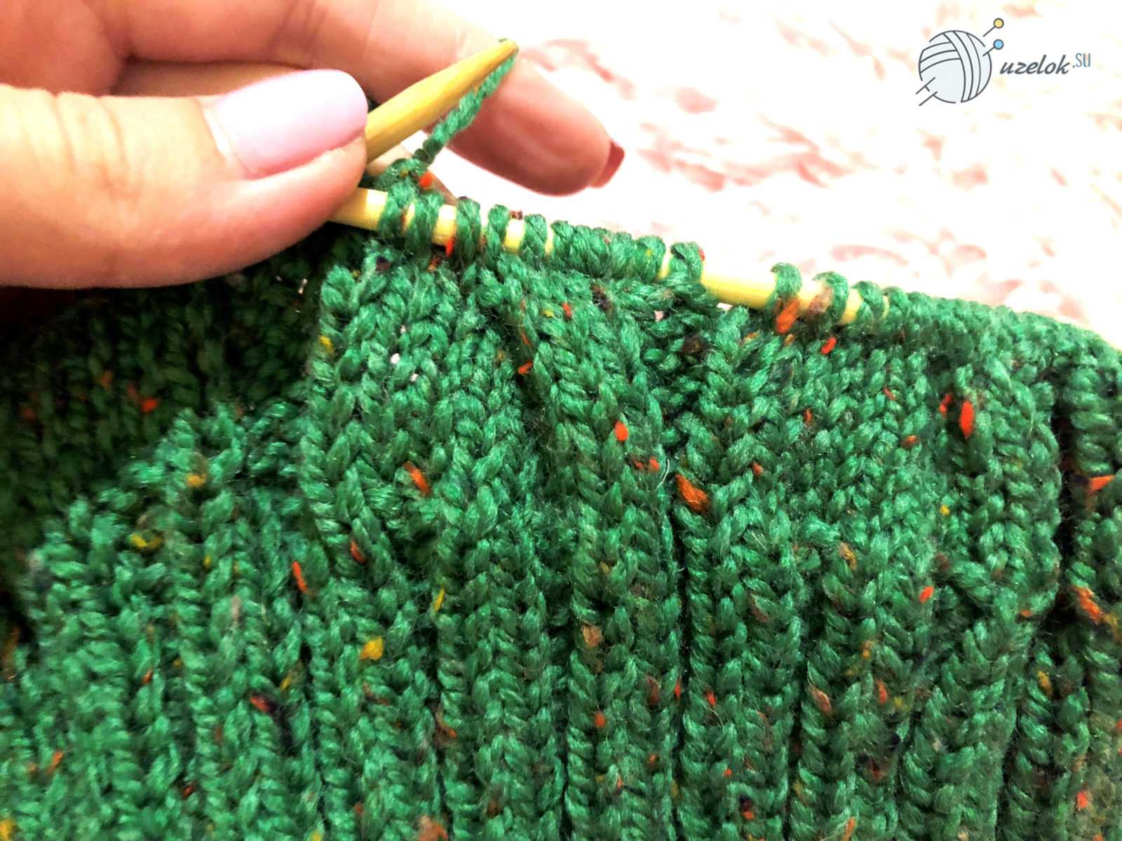Меняем спицы на № 6, добавляем 4 петли и вяжем: