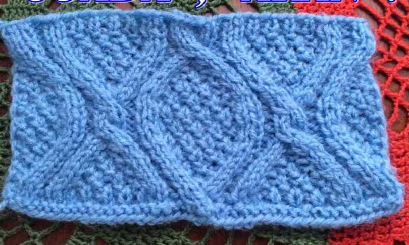 - Снятые лицевые помещаете на основную спицу и вяжете до конца ряда. В 10-12 рядах ориентируетесь на рисунок. Раппорт узора равен 12 рядам.