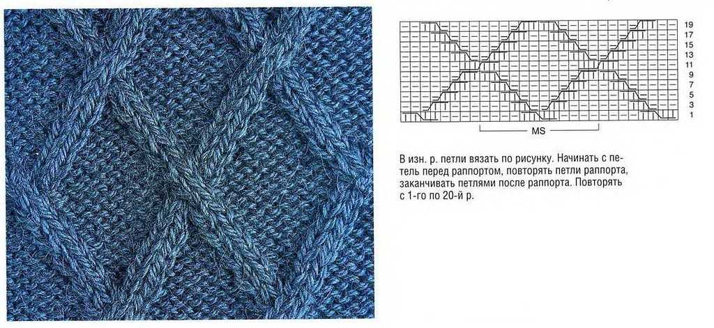 - Распределить петли на 5 раппортов и вязать в соответствии со схемой.