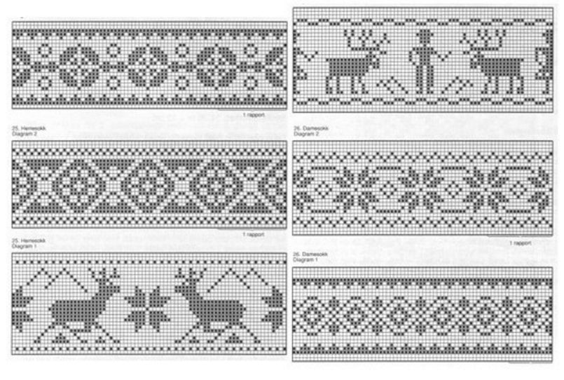 Норвежский, или как его еще называют жаккардовый узор, сам по себе не так уж сложен в исполнении. В основе лежит вывязывание узоров цветом, отличающимся от основного, на лицевой глади. Его схемы уже приводились в описании вывязывания двойной шапки для подростка. Вот еще несколько веселых идей на заметку.