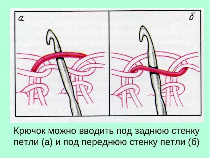 Для этого введите крючок за заднюю стенку следующей петли предыдущего ряда, захватите рабочую нить и протяните её через петлю, лежащую непосредственно на крючке. Вследствие чего образуется рубчик, а вязка получится в виде полосок. Сделайте один ряд другим цветом.