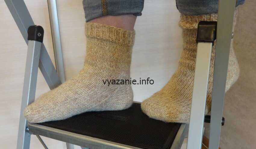 Продолжаем вязать круговыми рядами, выполняя узор «ложная» коса на верхней панели носка, а на нижней — согласно схеме № 1 лицевая гладь до необходимой длины.