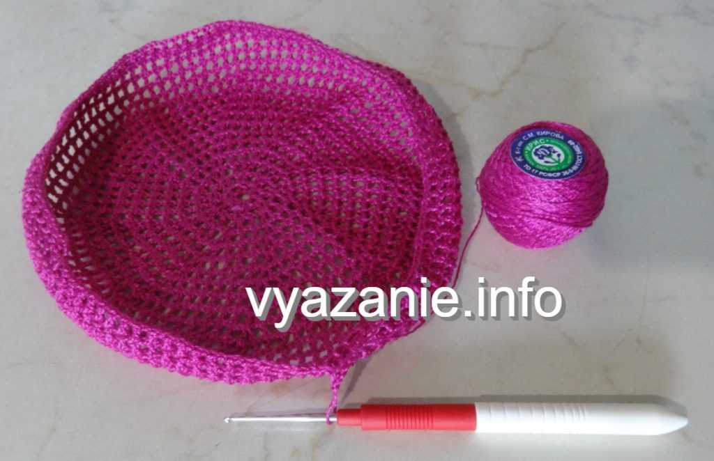 Свяжите круг, радиус которого 12 см и тогда можно связать сетчатую часть – 2 см.