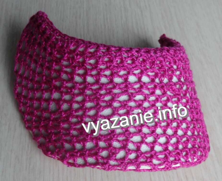 Начинать обвязку надо сверху. Затем сужаем и снова расширяем. Получился чехол, в который вставим пластиковый козырёк.