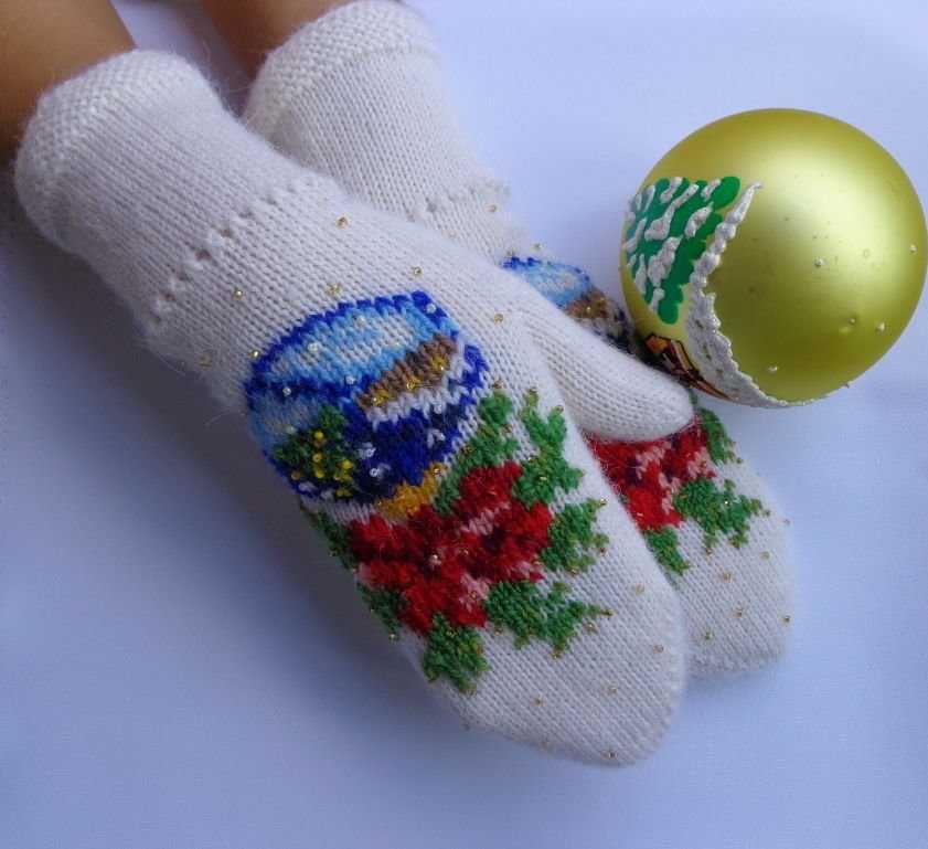 Раз речь идет о вышивке по вязанным изделиям, то стоит немного поговорить и о технике, благодаря которой, надевая варежки, можно с легкостью забыть о зимних метелях.