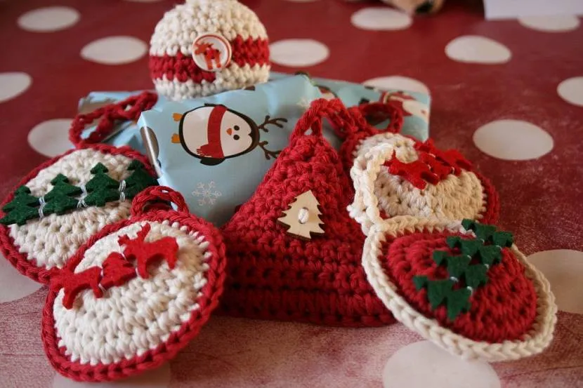 В этот волшебный праздник хочется украсить дом чем-то оригинальным, выразить свою индивидуальность и дать простор фантазиям. Новогоднюю елку можно оформлять не только шариками и гирляндами, но и добавить на ее ветви оригинальные вязаные фигурки забавных зверят и сказочных персонажей. Хорошей идеей будет размещение особых карманчиков, в которые можно класть подарки и украшения. Если большую елку приобрести не удалось, то есть возможность создать миниатюрное деревце из зеленой пряжи. Затем елочку украшают венками, колокольчиками и атласными лентами разных оттенков. Таким образом можно создать особое ощущение праздника.