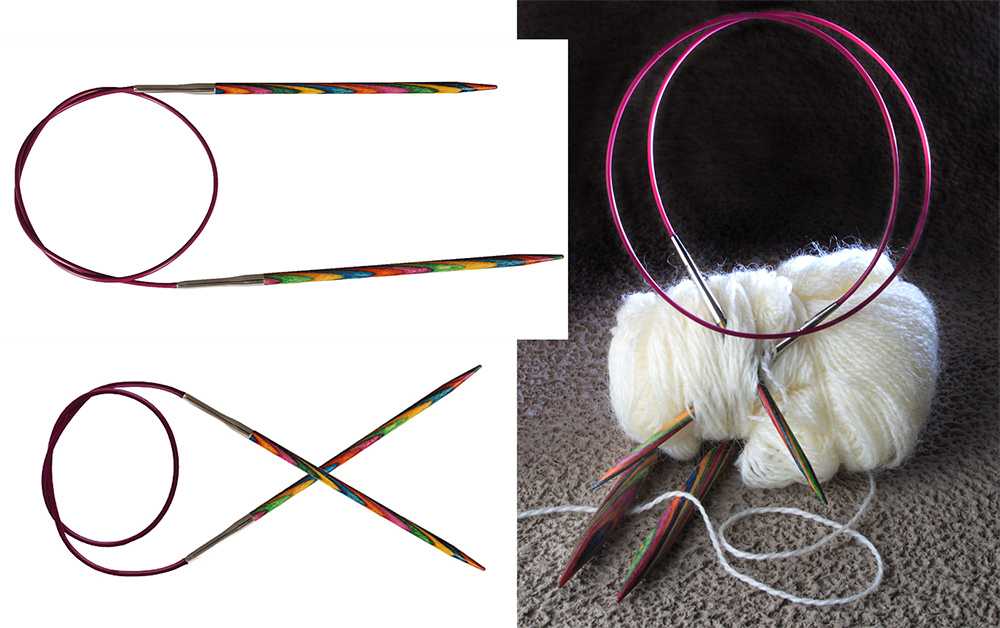 Две спицы, соединённые леской или гибким шнуром. Название точно отражает их назначение: вязать круговые изделия, например шапки.