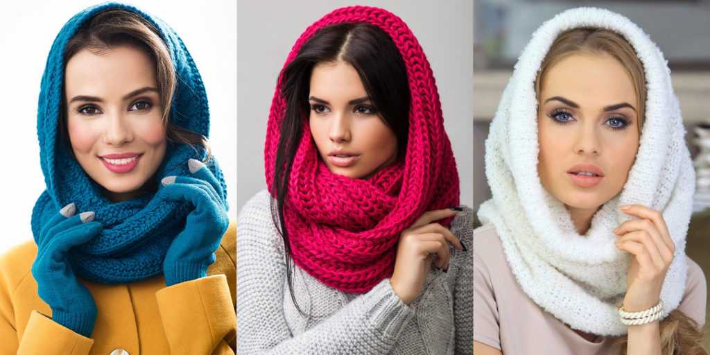 Снуд — это цельный шарф, который связан по кругу. Его можно носить просто как шарф, а можно надеть его часть на голову, и тогда получится два предмета из одного в едином стиле: шапка и шарф.