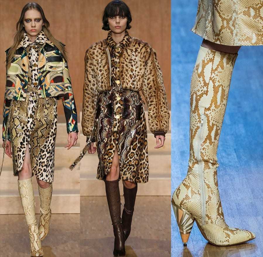 Идея, подсмотренная на топовых показах – это комбинация в одном образе единого анималистичного принта с разницей в размере, цвете или стиле. По такому принципу создается небанальный total look, который всегда приковывает восхищенные взгляды.