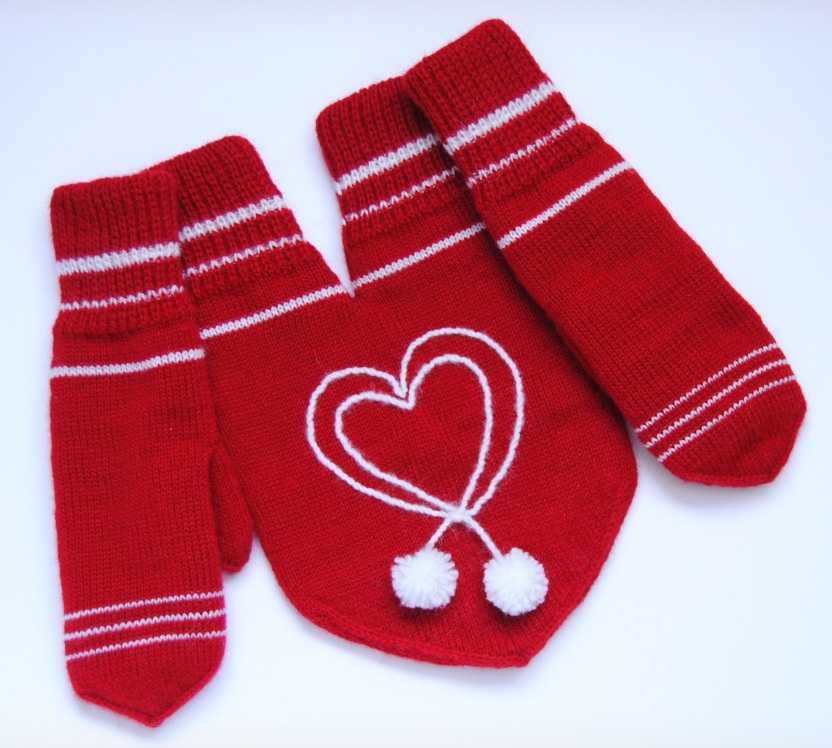 весенние варежки для влюбленных спицами с сердечкамиИнтересные модели варежек для влюбленных привлекают рукодельниц оригинальностью исполнения и полем для творчества в декорировании.
