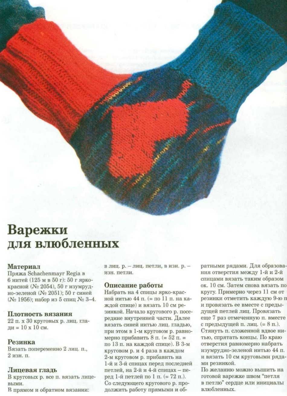 описание вязания спицами варежек для влюбленныхИ фото-ряд готовых моделей: