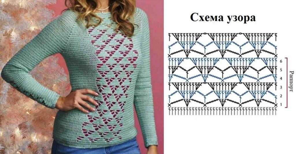 Свитер женский крючком «Пленительная сеточка»: схема, описание, фото