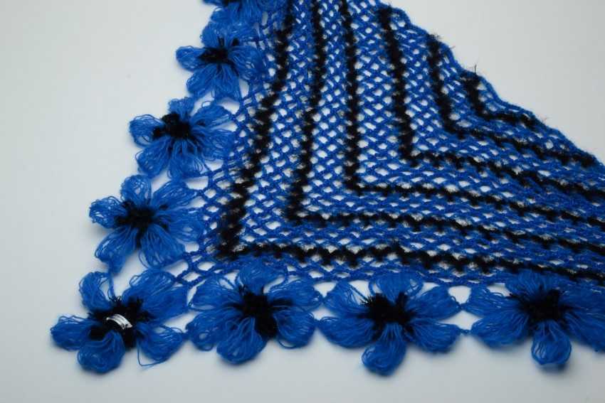Наборный и закрытый край бордюра, а так же закрытый край самой шали с изнаночной стороны необходимо обвязать крючком;
