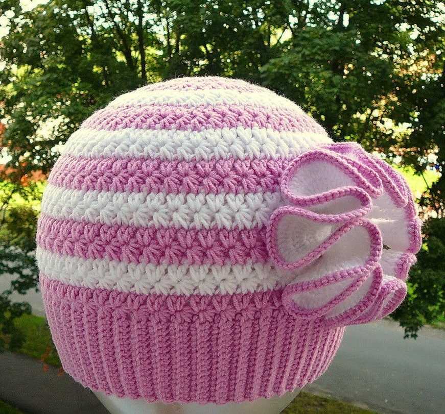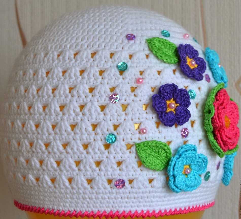 Красивая, модная шапка на весну для девочки крючком: схема и описание