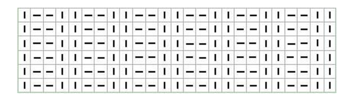 - Вязать 30 рядов по предложенной схеме (всего на 105 получившихся петлях должно поместиться 5 раппортов).